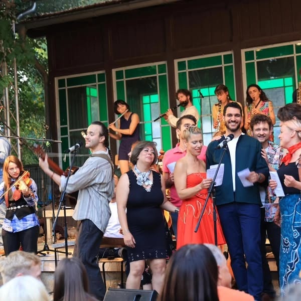 An amazing week is upon us! We had so much fun with random body music workshops, we covered the legendary song Niška banja, and learned sixteen more songs from as many different countries. Concert by the orchestra of the Railway Station in Leisnig (Bahnhof Leisnig Orchestra) is an annual project of the independent cultural center in East Germany. During the seven-day residency, forty international musicians learned, arranged and practiced seventeen compositions from different countries around the world (Japan, Holland, Germany, Portugal, Finland, Ireland, USA, Georgia, Palestine, Greece, Brazil, Persia, France, Scotland and Serbia). Part of the program also included local amateurs, a choir, an orchestra and a percussion group.